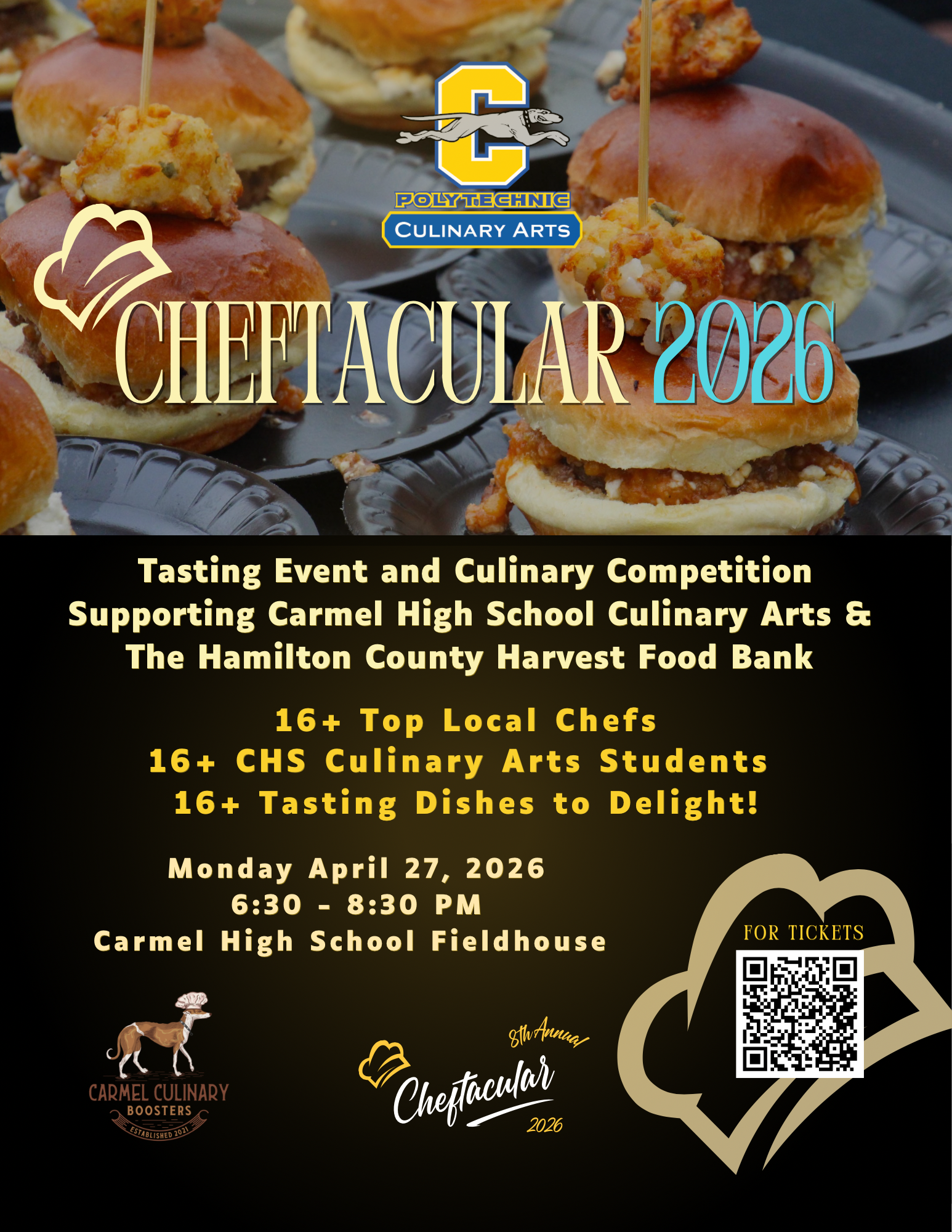 All proceeds support CHS Culinary Arts, the Cheftacular Scholarship, and the Hamilton County Harvest Food Bank.
